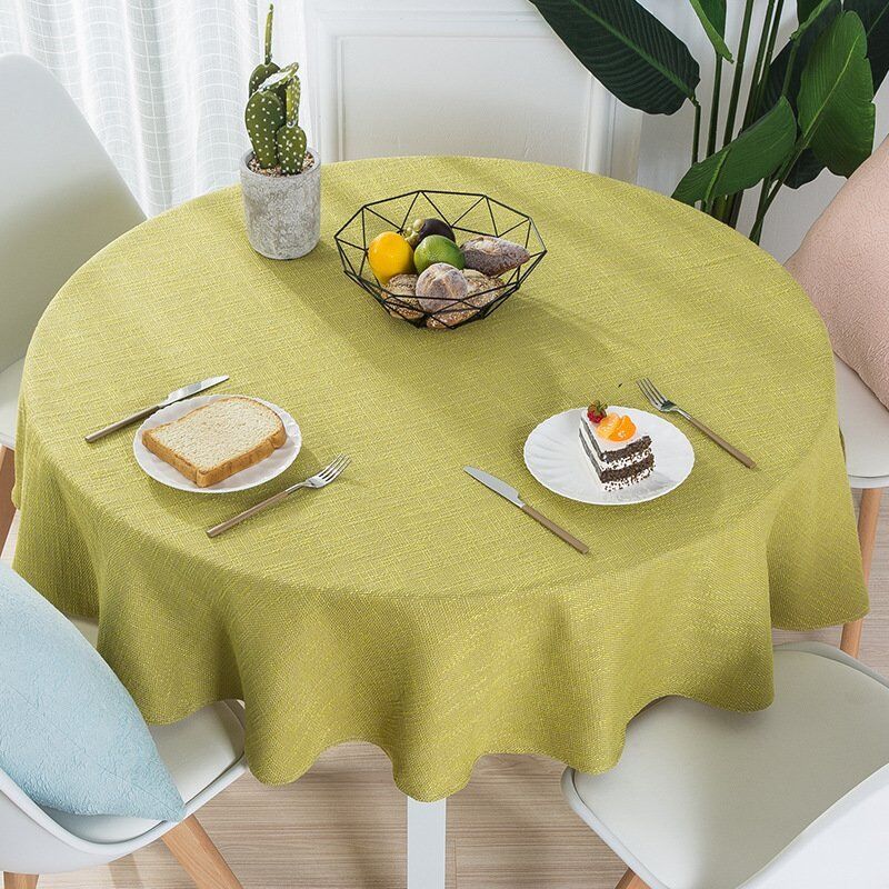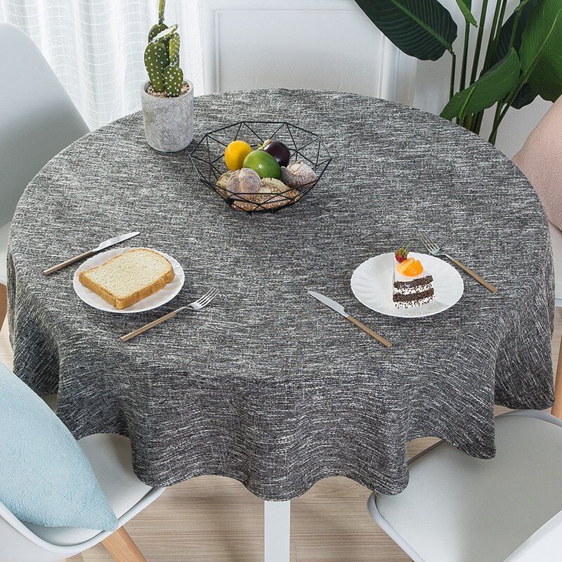 Simple design round Jacquard linen look tablecloth for home or hotel